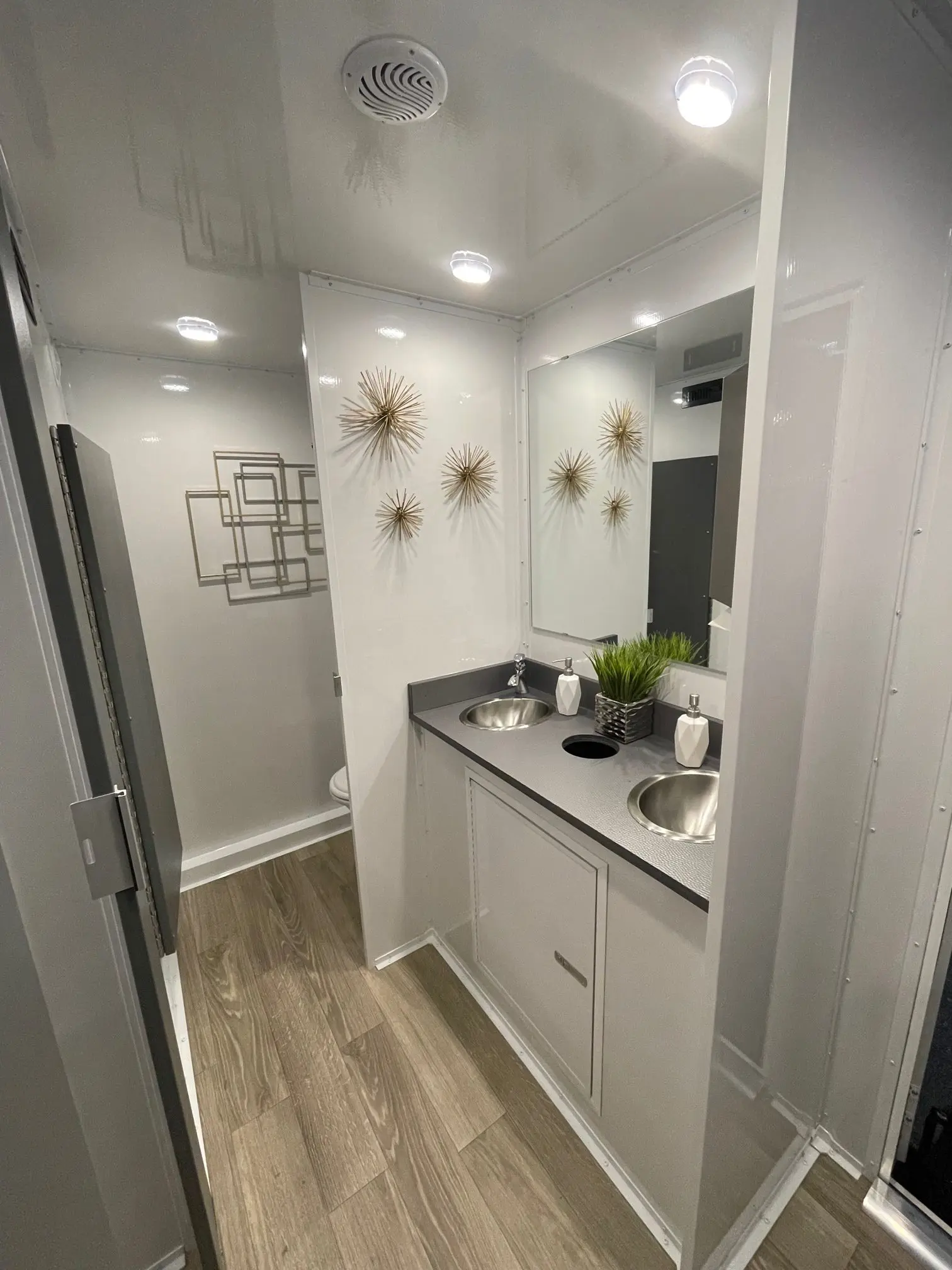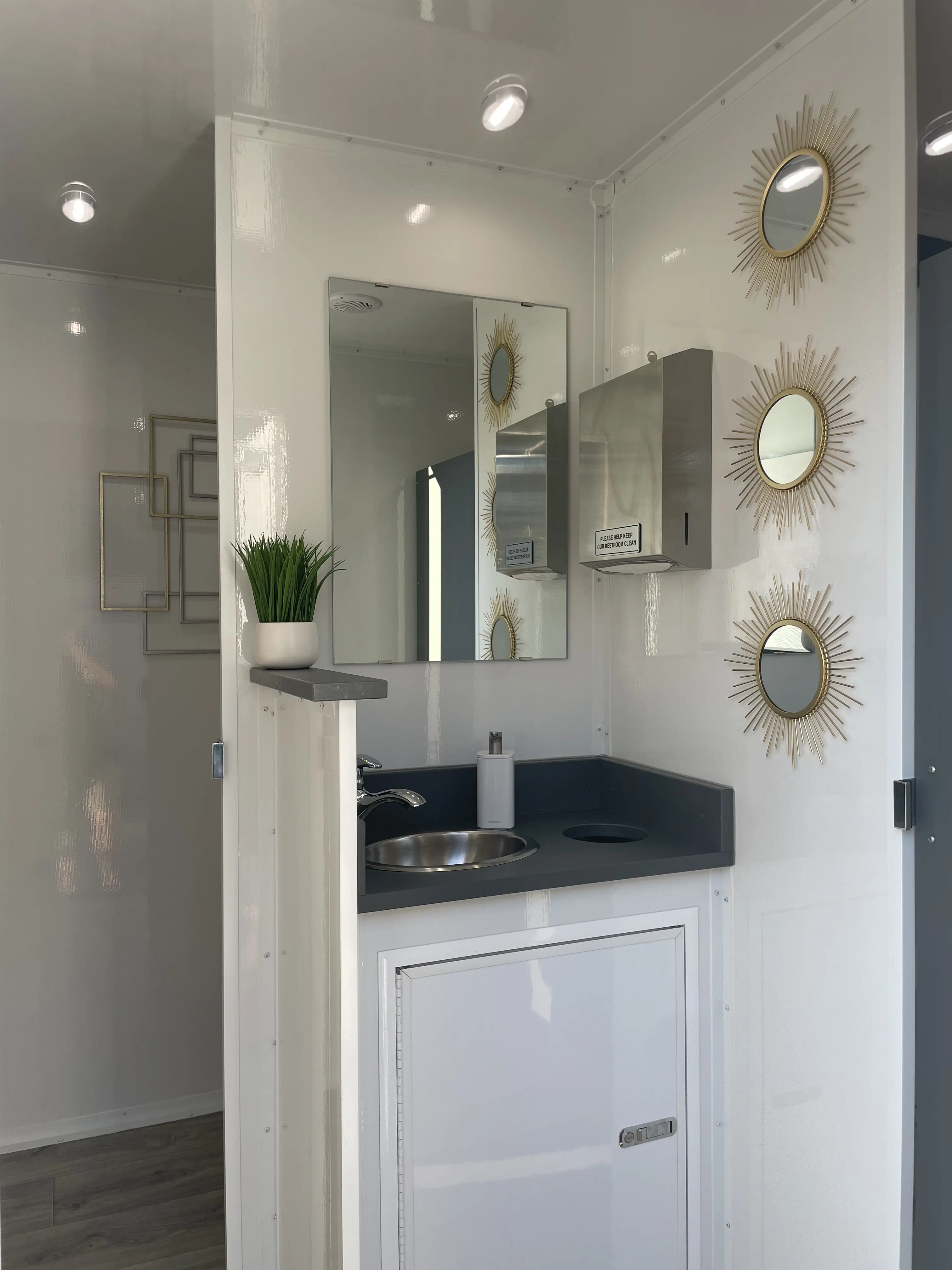 Ideal for events of up to 300 people, our 5-station restroom trailer has three women's and two men's bathroom stations.