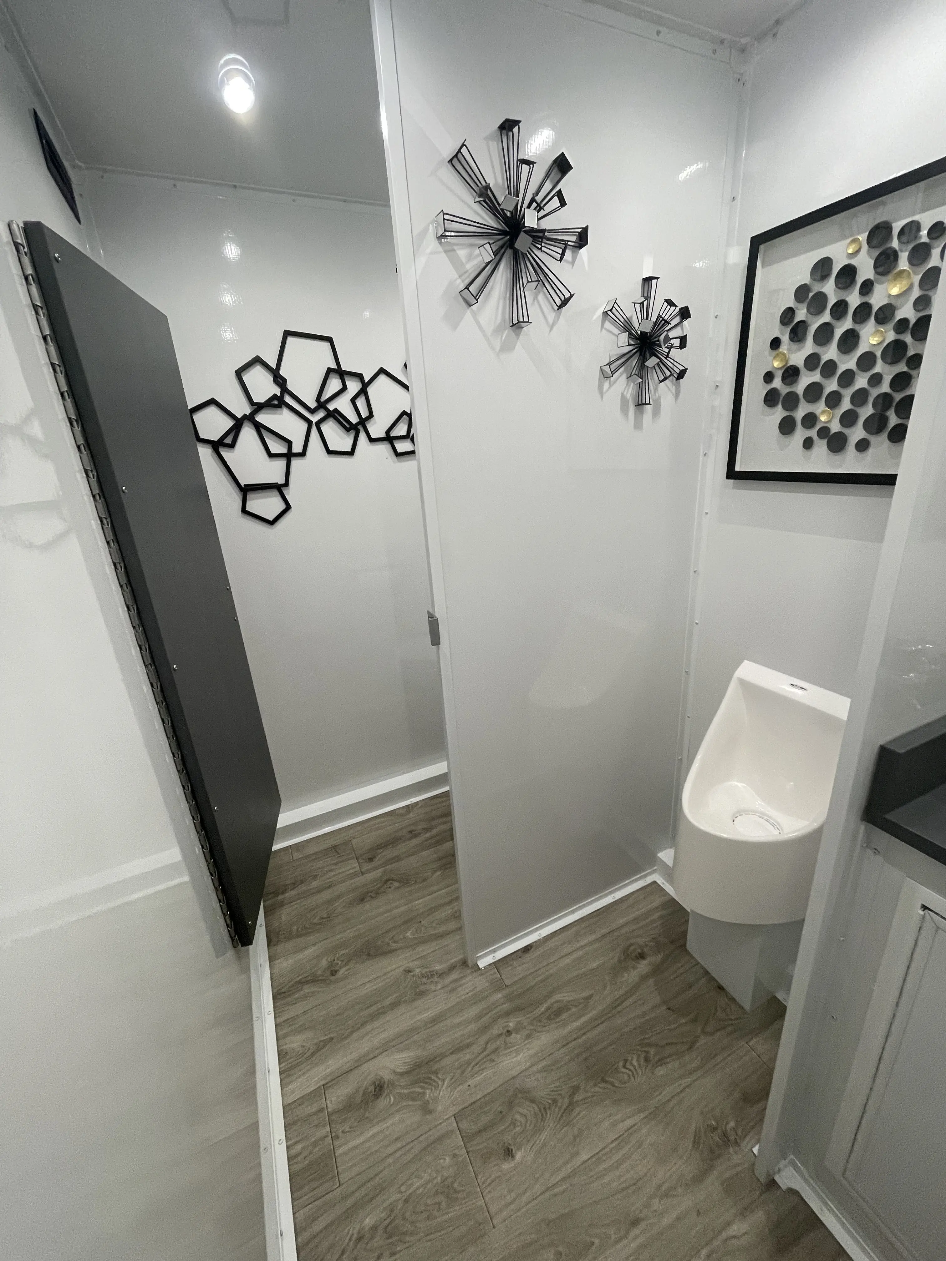 Perfect for events of up to 225 people, our 4-station restroom trailer has two men's and two women's bathroom stations.